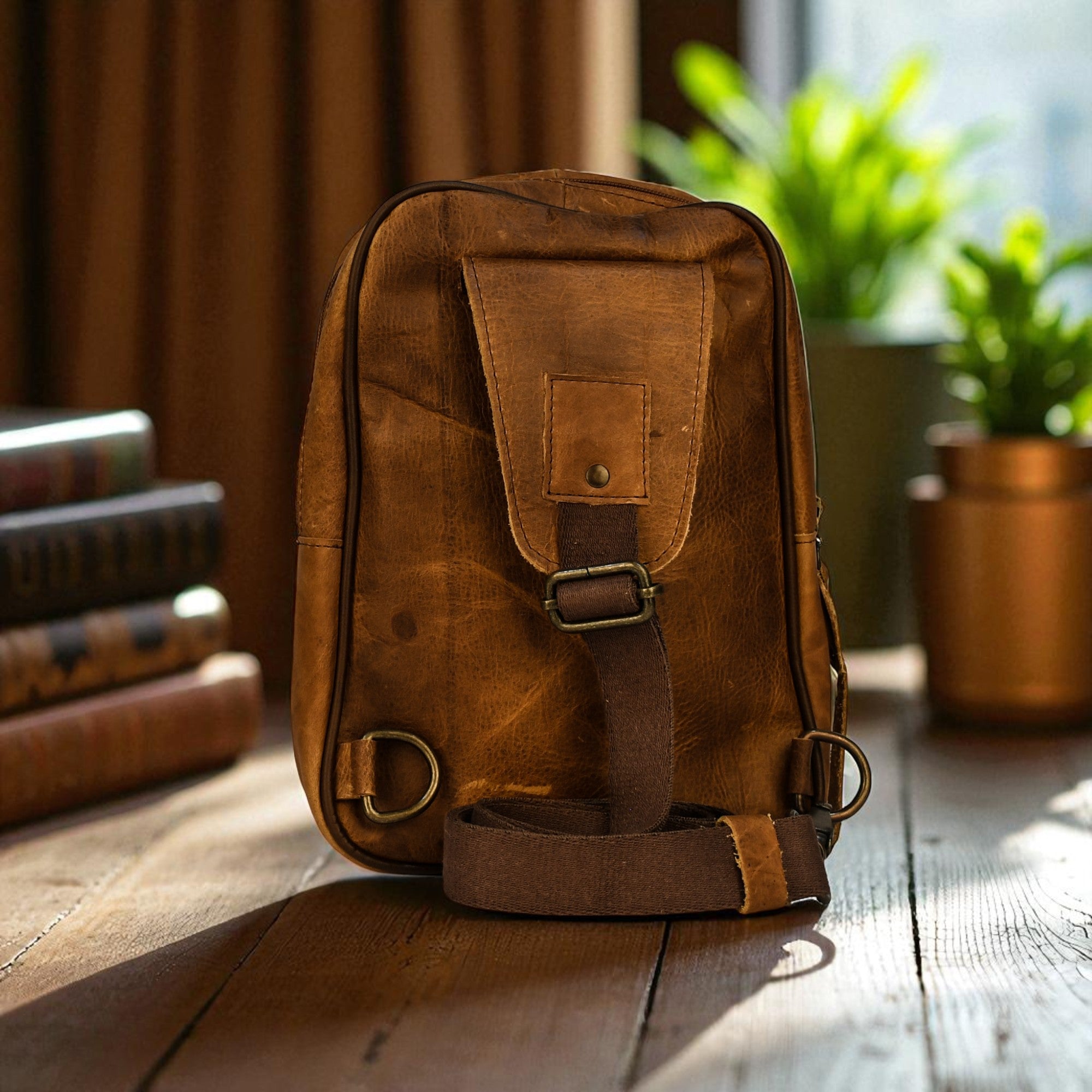 Bovine Leather Sling Bag - Tan