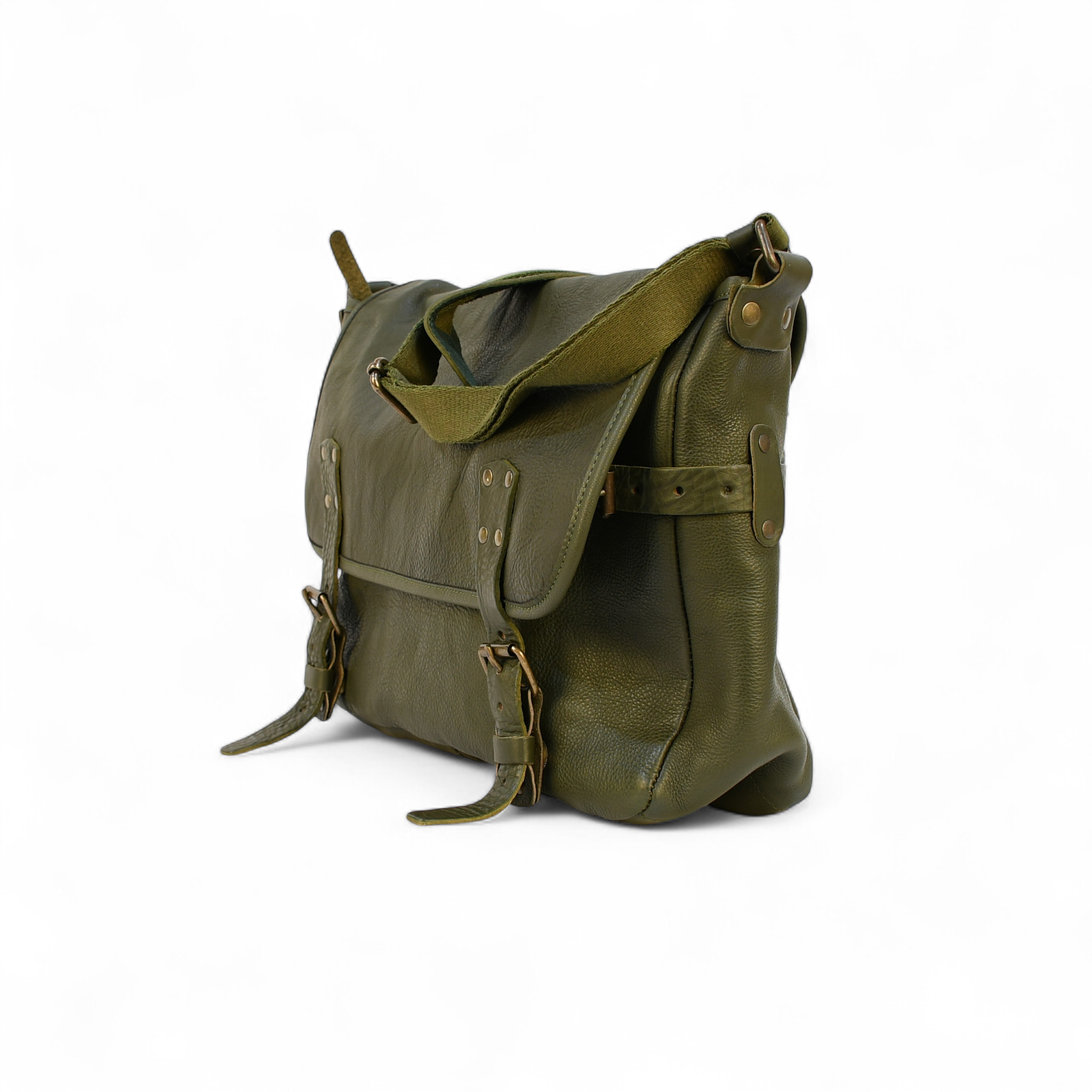 Simple, sturdy, and fashionable. Our messenger bag boasts a large interior pocket to carry nearly anything you might need, with enough space inside for the largest of modern laptops and tablets. Straps on the side can be tightened for added security of your contents, or loosened for extra storage.