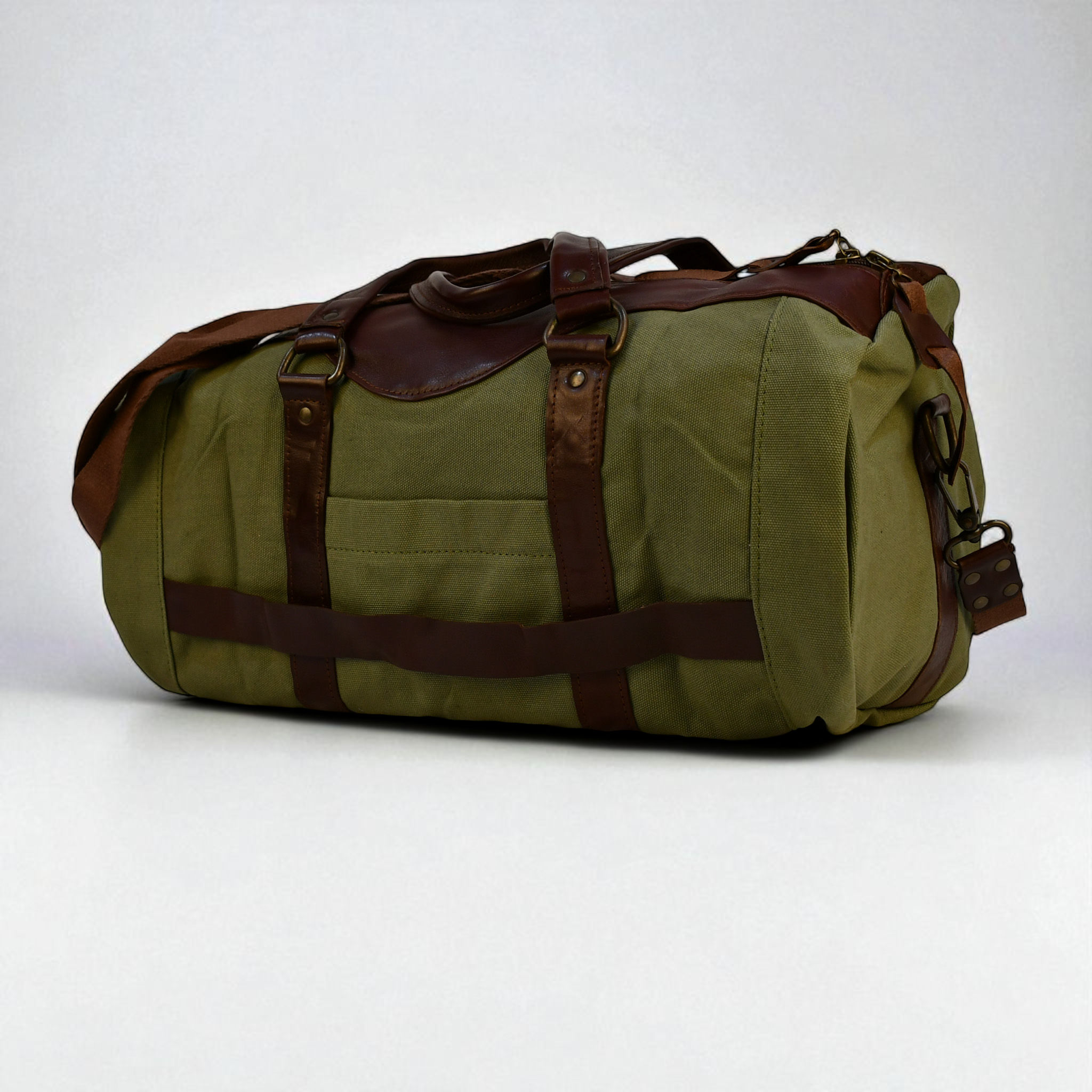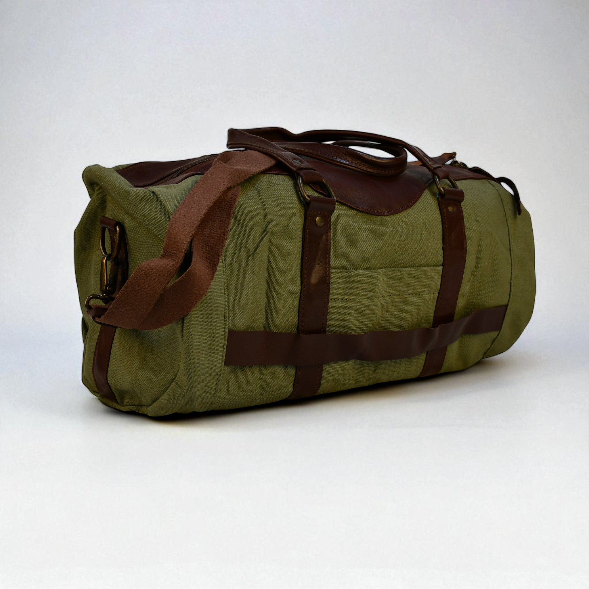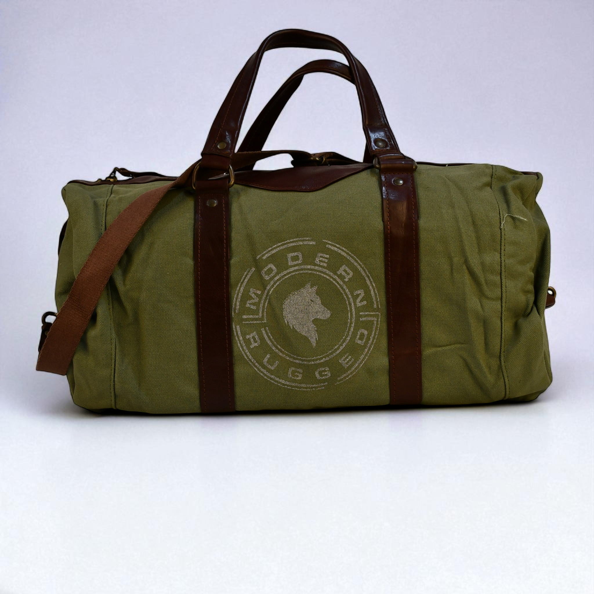 A rugged classic built for the long haul. The Modern Rugged Canvas Duffel in Olive pairs heavy-duty canvas with rich brown leather accents for a timeless, adventure-ready design. Whether you're traveling for the weekend, hitting the gym, or packing for the trail, this bag delivers durability, functionality, and signature Modern Rugged style.