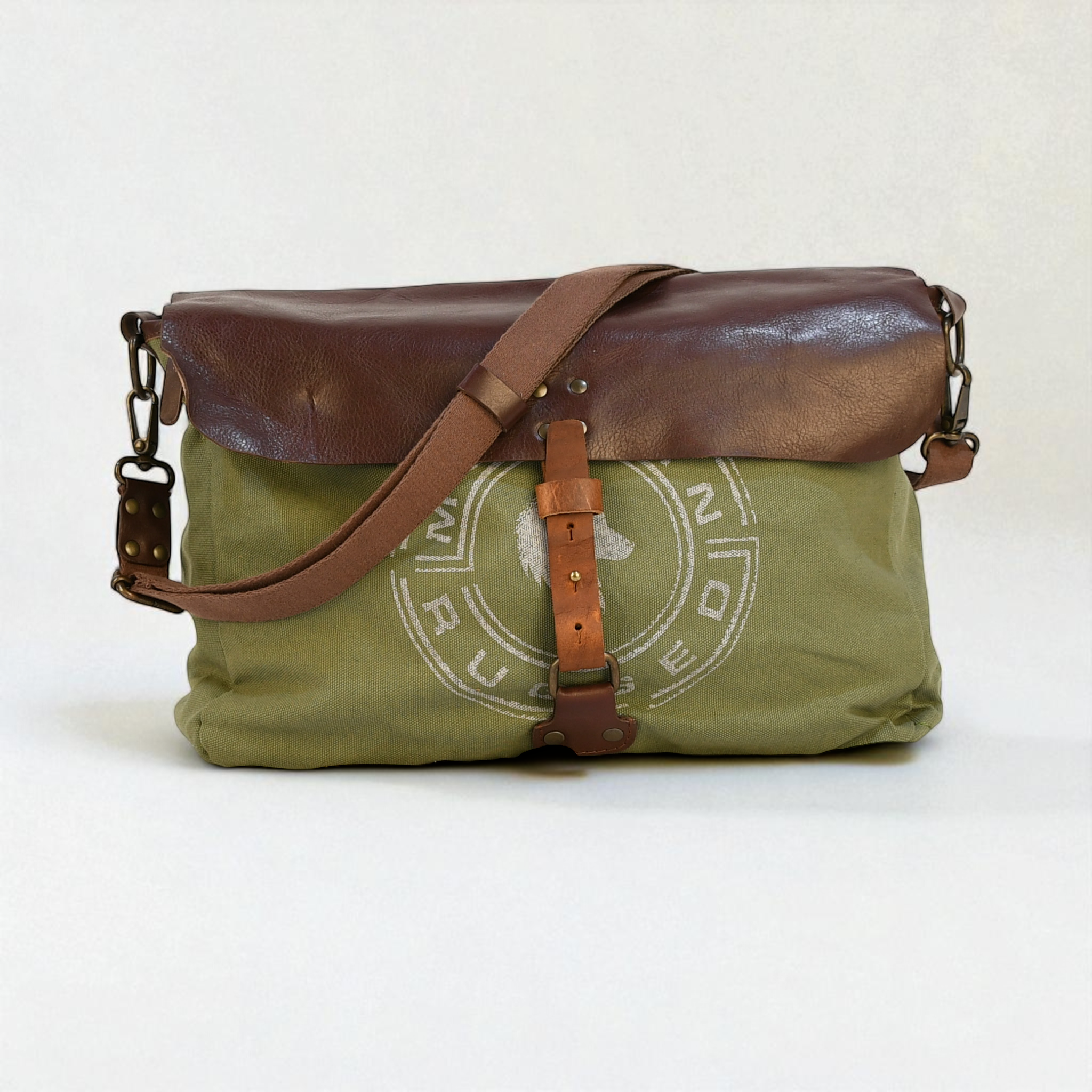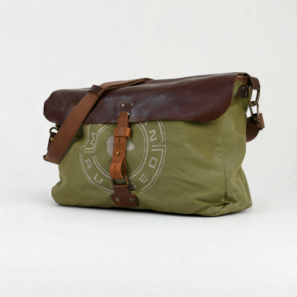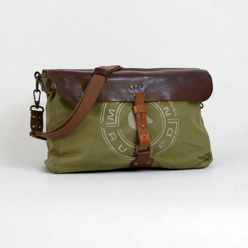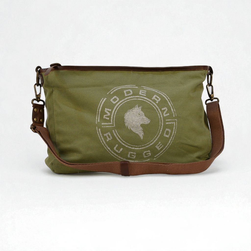 A rugged, heritage-inspired laptop carrier built for work, travel, and everyday use. Crafted from thick, heavy-duty olive canvas with rich brown bovine leather accents, this laptop bag delivers durability, utility, and signature Modern Rugged style. Tough enough for the outdoors, refined enough for the office.