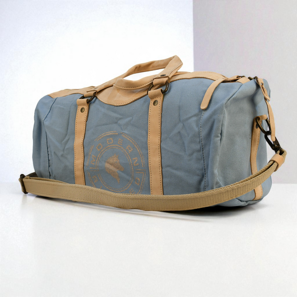 A standout weekender with a soft, vintage-inspired palette. The Modern Rugged Canvas Duffel in Powder Blue pairs durable, heavy-duty canvas with cool tan leather accents for a clean, refined look that’s built for adventure. Lightweight yet rugged, this duffel is the perfect companion for weekend getaways, road trips, and everyday carry.